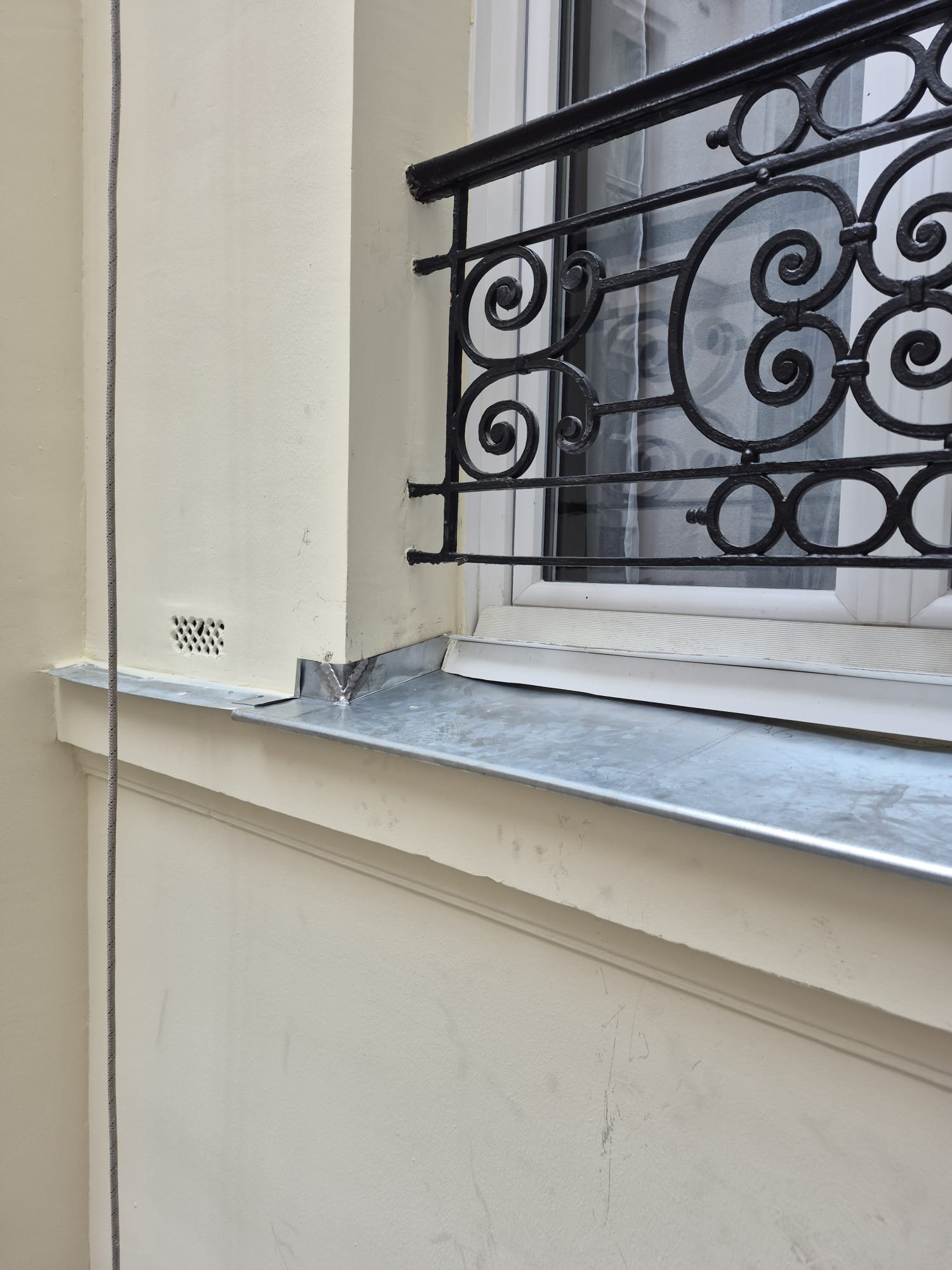 À la suite du ravalement, notre client nous a confié la réfection totale de l’ensemble des bandeaux et appuis de fenêtre en zinc.